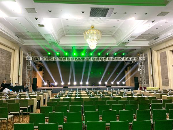 武漢安捷利全權(quán)負責本次會場活動的策劃設(shè)計和搭建,公司派出設(shè)計團隊現(xiàn)場設(shè)計策劃,短短兩天時間,就完成了會場布置以及搭建,本次會場設(shè)計公司業(yè)務(wù)有:會場桁架搭建,舞臺背景搭建,音響設(shè)備租賃,專業(yè)話筒租賃,LED高清顯示屏租賃,舞臺地毯租賃,燈光TRUSS一批,網(wǎng)架一批,廣告物料一批等。為了確保會議活動的順利進行,工作人間積極現(xiàn)場調(diào)試設(shè)備,工作態(tài)度也受到了甲方的一直認可。